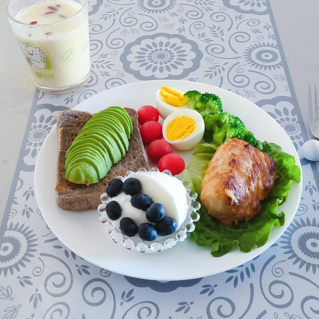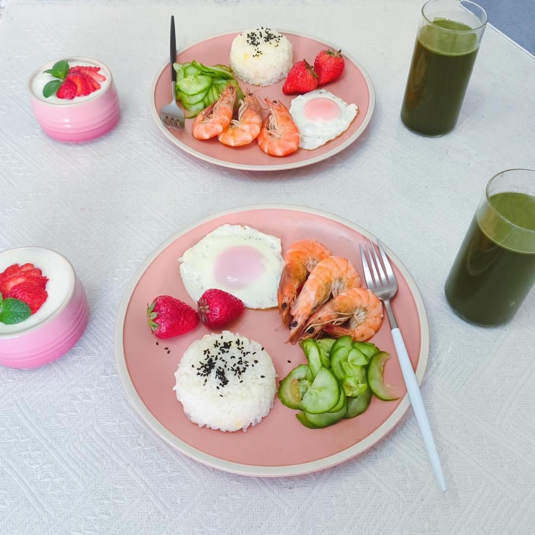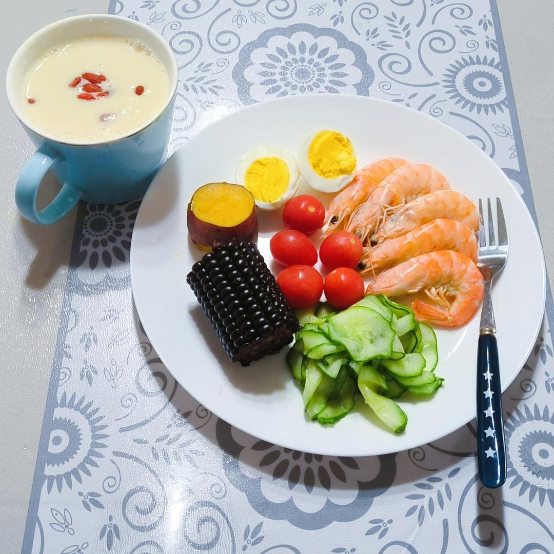 早餐:低脂黑麦肌肉饼,银耳红枣羹+黑芝麻小汤圆,煎蛋糖醋黄瓜片,芒果小番茄,坚果草莓酸奶。