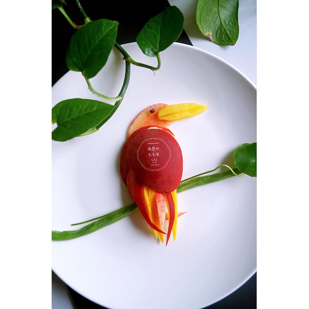 用水蜜桃和黄桃做的小鸟