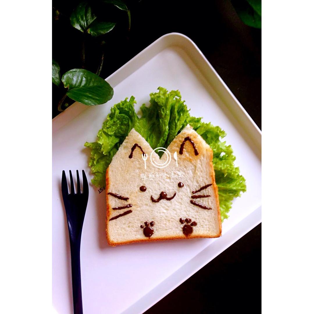 家里没有花生酱,就简单的用巧克力勉强画了一只喵,每次用巧克力画东西都把自己画哭