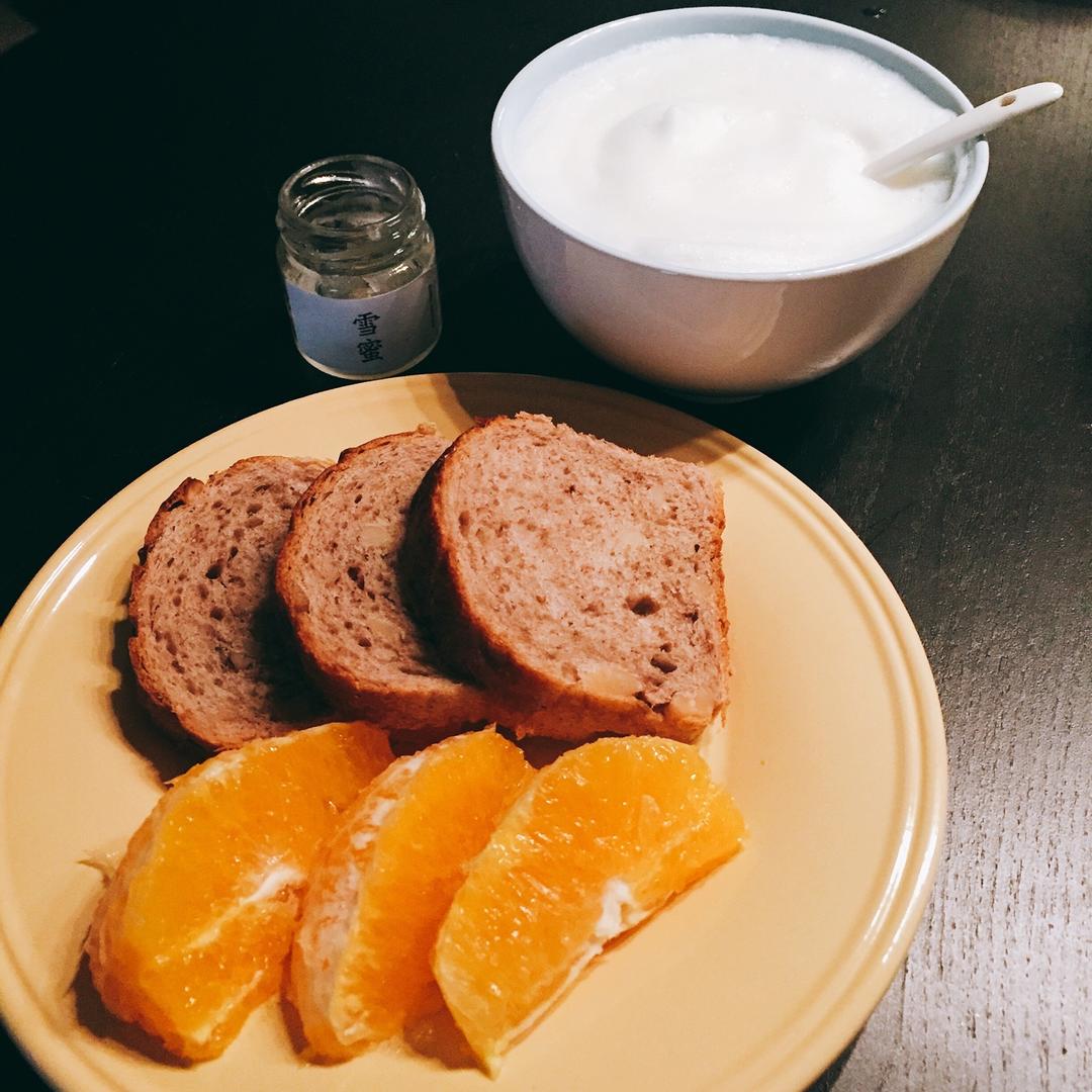蜂蜜山药牛奶+蜂蜜坚果欧包+橙子 今天的早餐主角是蜂蜜山药牛奶,前一天晚上蒸的铁棍山药,剩下两小块和牛奶一起放到搅拌机...