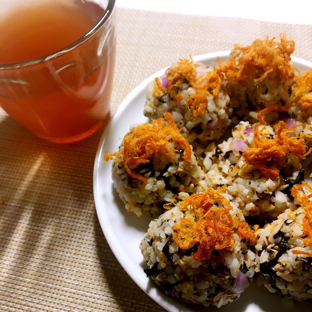 用的普通的紫菜 加了香油 也还不错 最后点缀点肉松 丰富了口感~简单易行