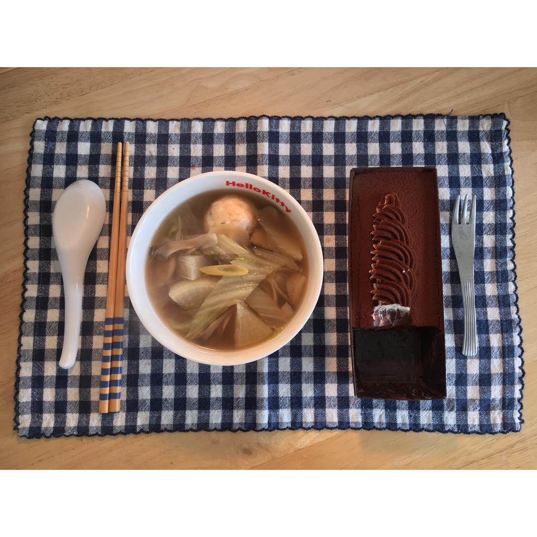【萝卜白菜虾丸热汤+巧克力蛋糕】