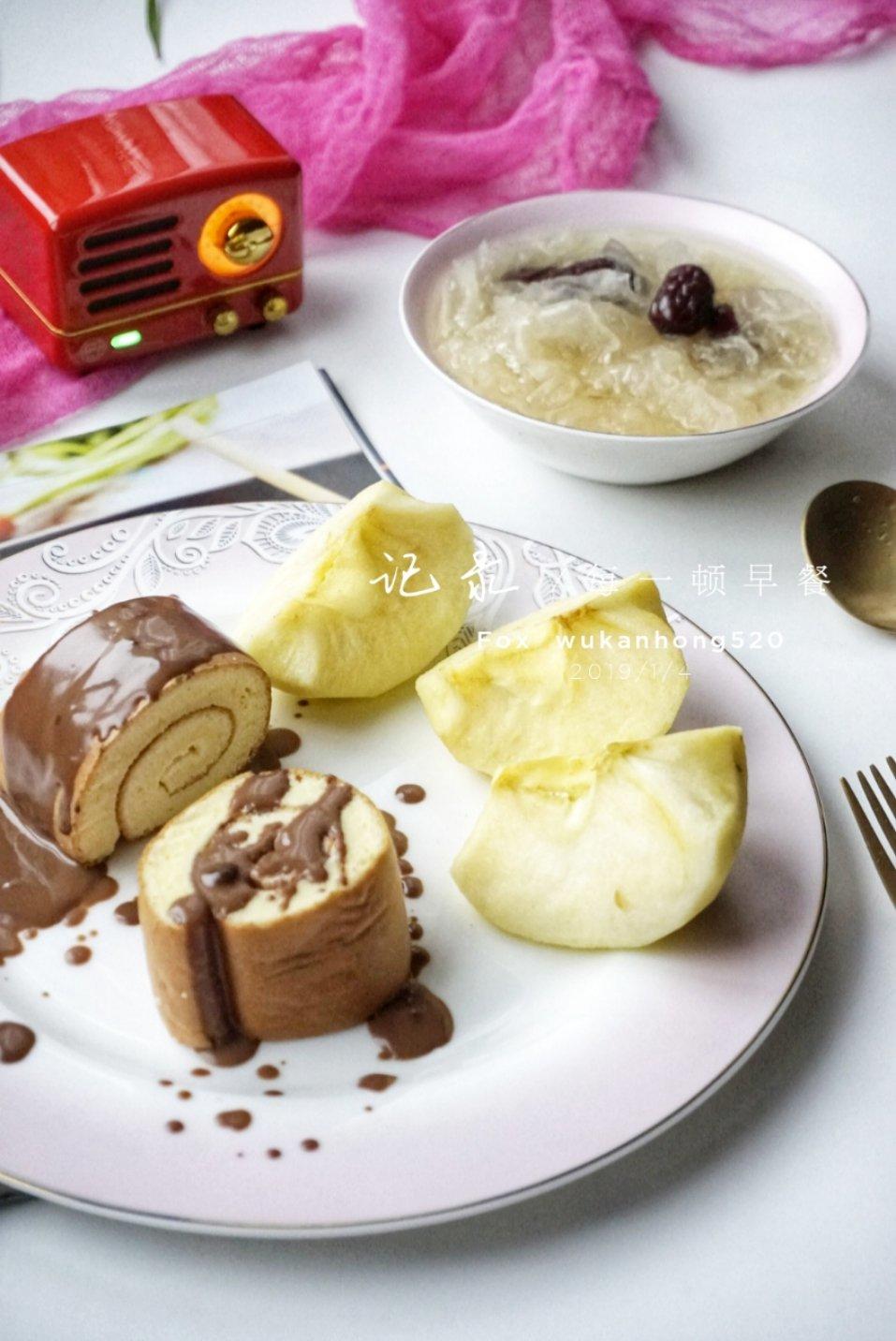 日食记---今日早餐:蛋糕卷+银耳红枣羹+苹果
