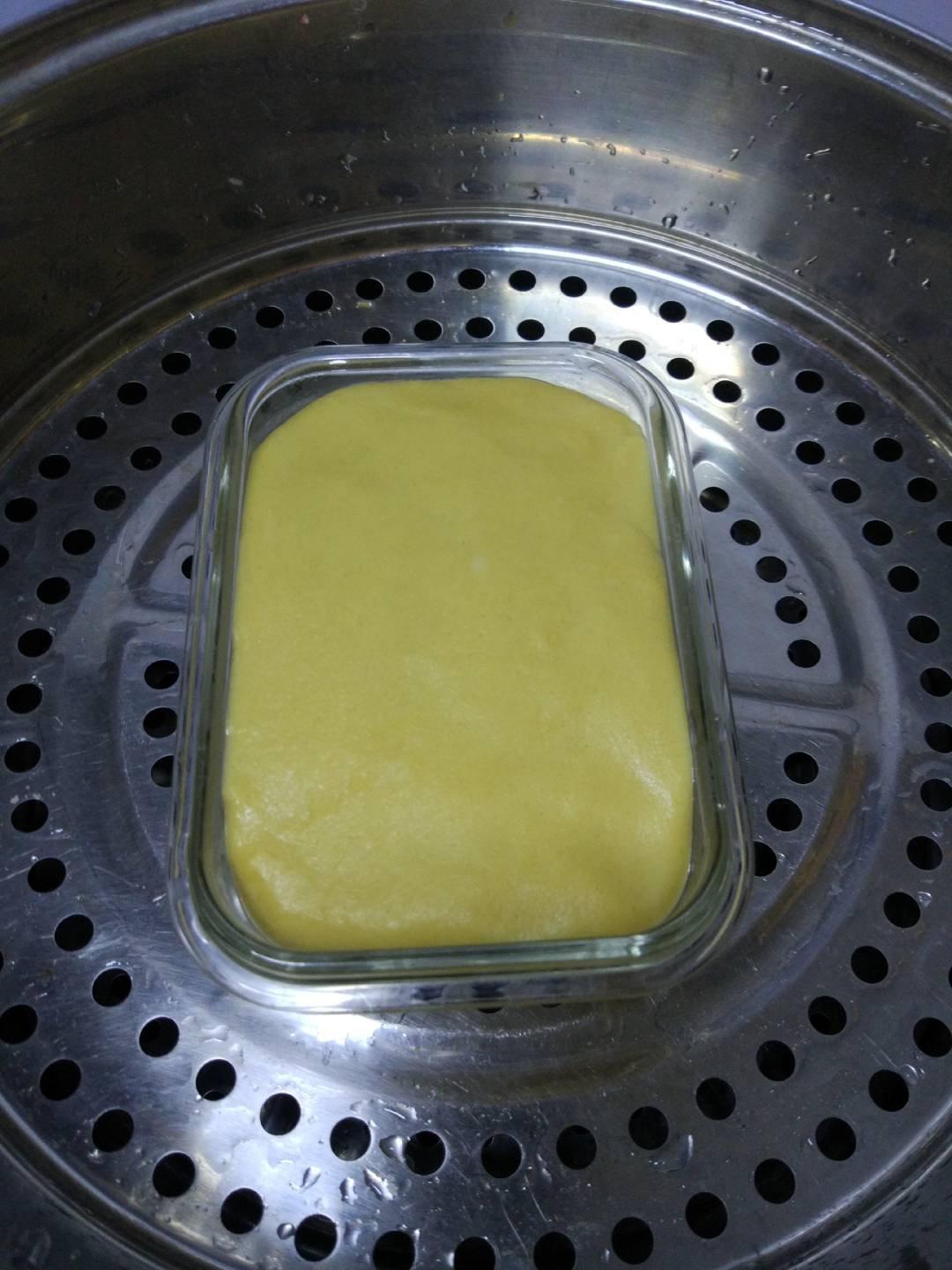 大黄米粉300克,水160克,蒸20分...
