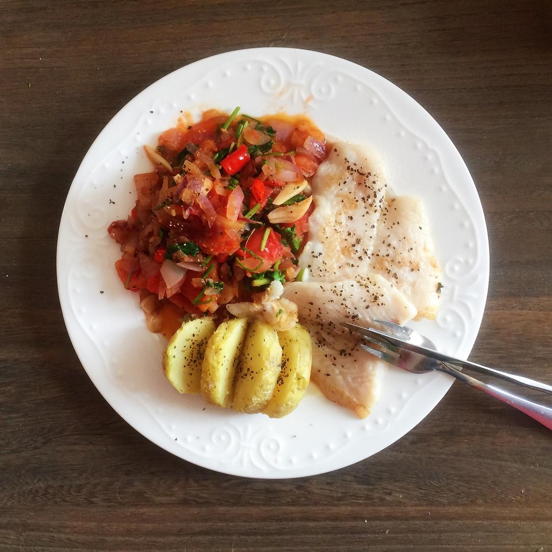 昨天吃了大火锅,按说今天没脸吃饭了…不过还是得吃。简单点,西红柿,洋葱,土豆,巴沙鱼,就这样了。 #午餐•2018年5月...