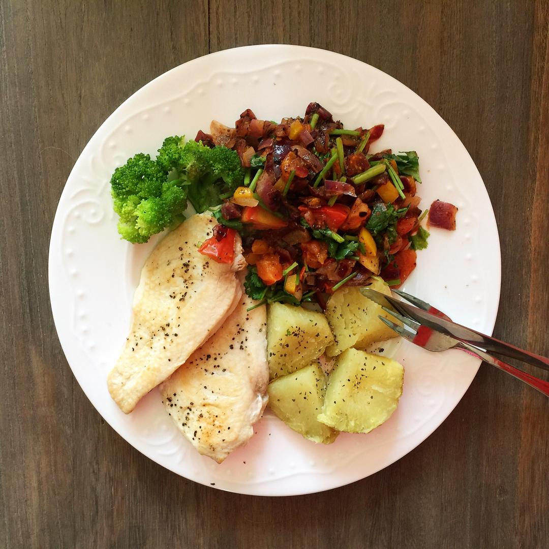 鸡胸,杏鲍菇炒洋葱,西兰花,土豆,外加一点点泡菜。土豆太好吃了,一个根本不够吃啊啊啊啊 \(*T▽T*)/ #午餐•2...