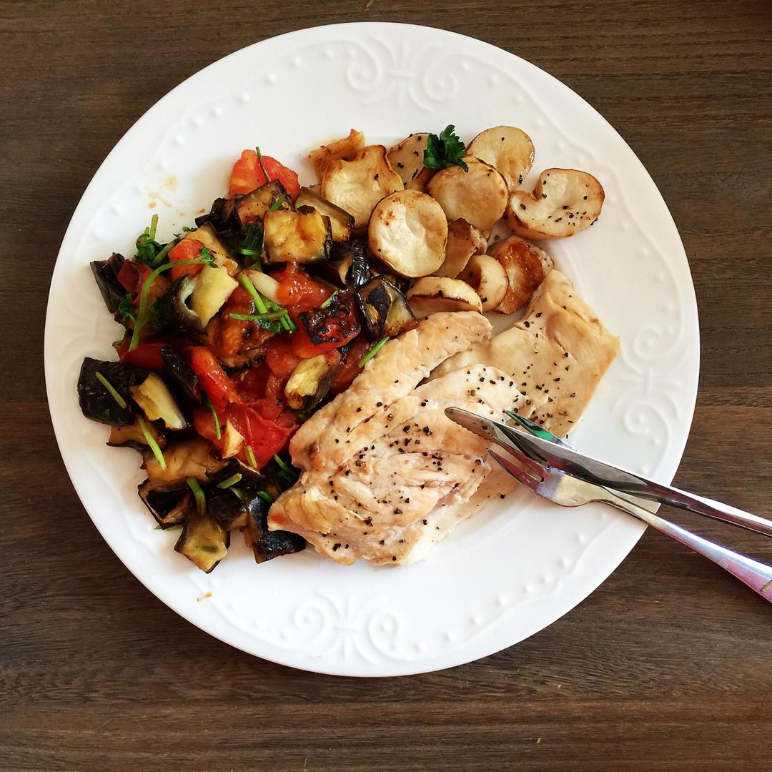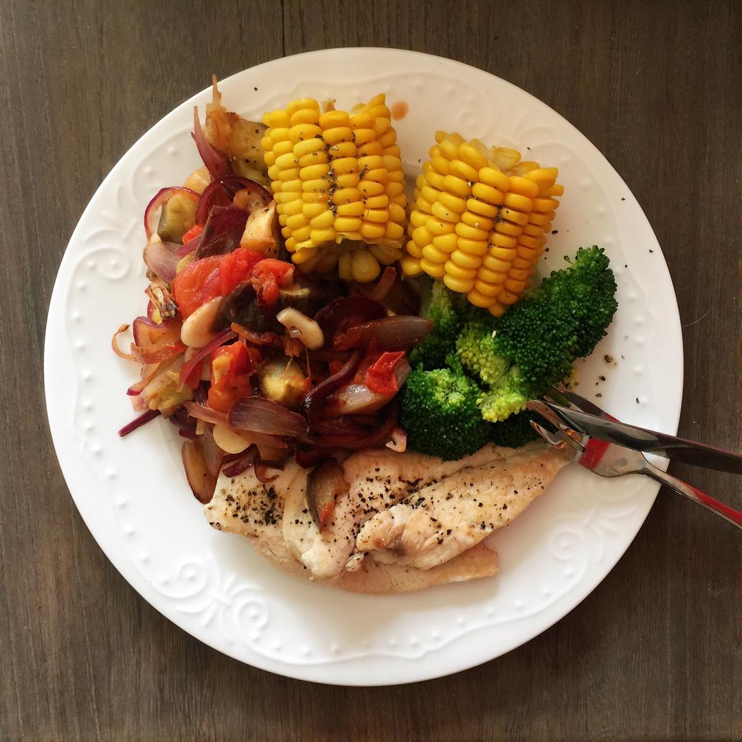 鸡胸肉配的西红柿洋葱炒茄子,瞎配的,因为刚好有这三样。味道不错呢。茄子很多人觉得特别吃油不健康,其实微波炉高火四分钟,放...