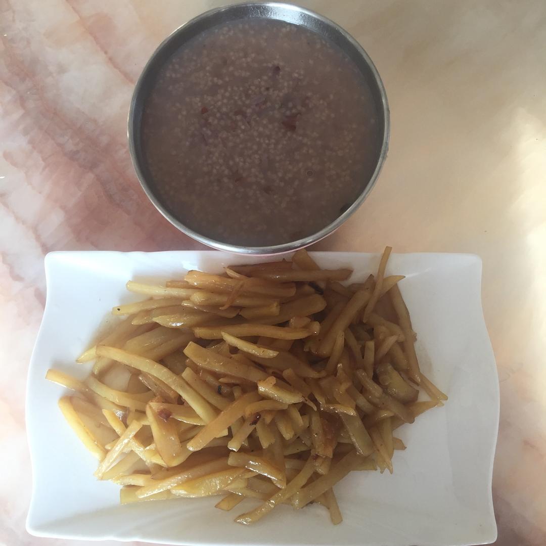 宝宝睡到三点多,煮了小米红米山药粥跟土豆,这次是把山药去皮打成糊在粥快熟时加入再小火开几次就好了 #午餐•2018年2月...
