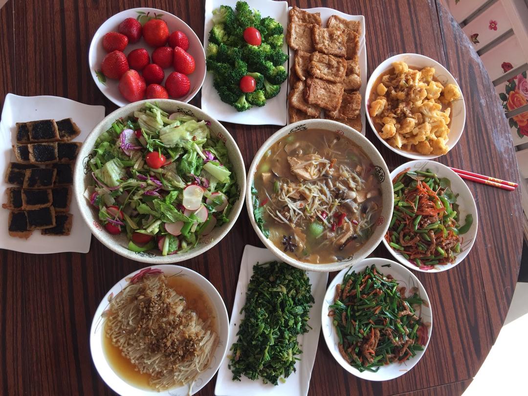 年夜饭.家乡饭--三十在老家准备的一桌纯素午饭,因为我跟孩子吃素的缘故,孩子爷爷许诺在要我们在家桌上不会有荤菜。于是中午...