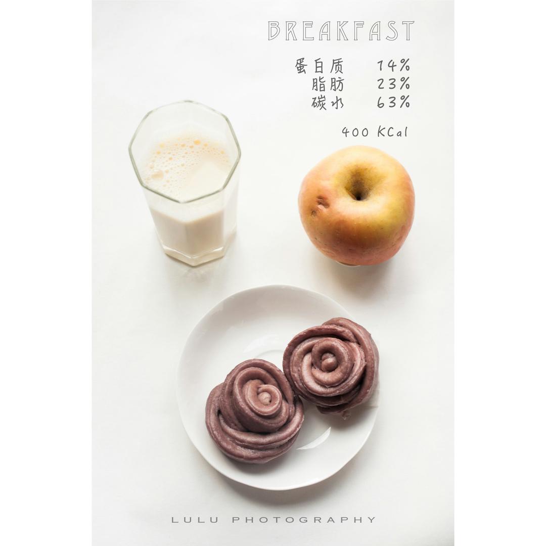 紫薯豆浆+两个肉包子