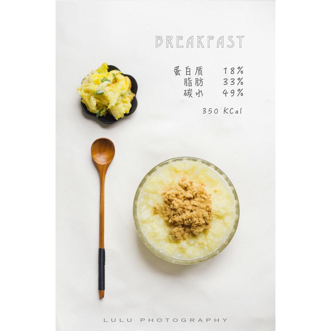 小米粥+炒鸡蛋+肉松