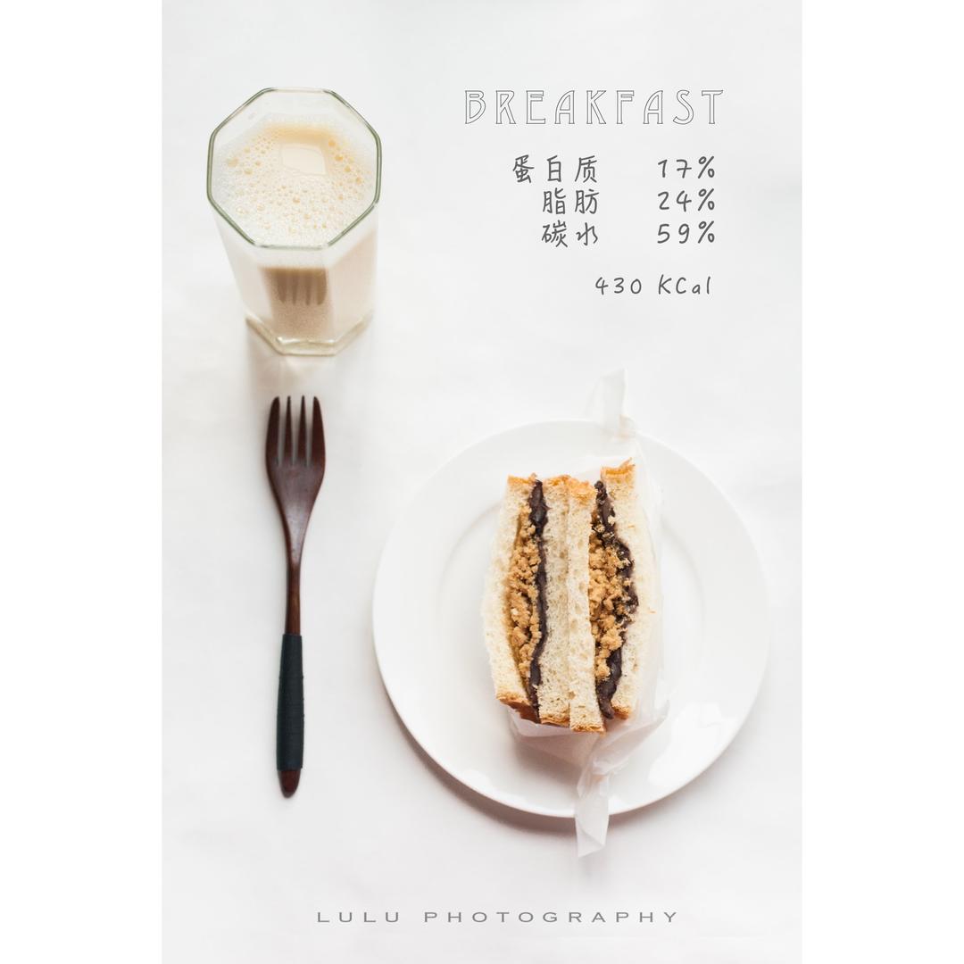 豆浆+红豆沙肉松三明治