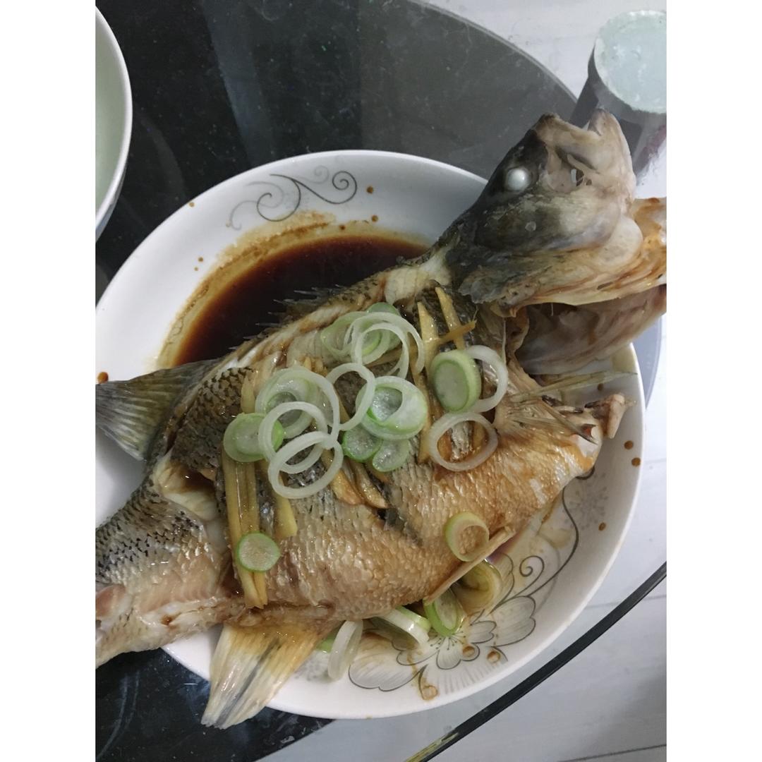 看到这些就知道又是出自小罗子的手艺啦啦啦😜😜,清蒸鲈鱼,清炒空心菜,胡萝卜🥕炖牛杂,烧黄骨鱼,