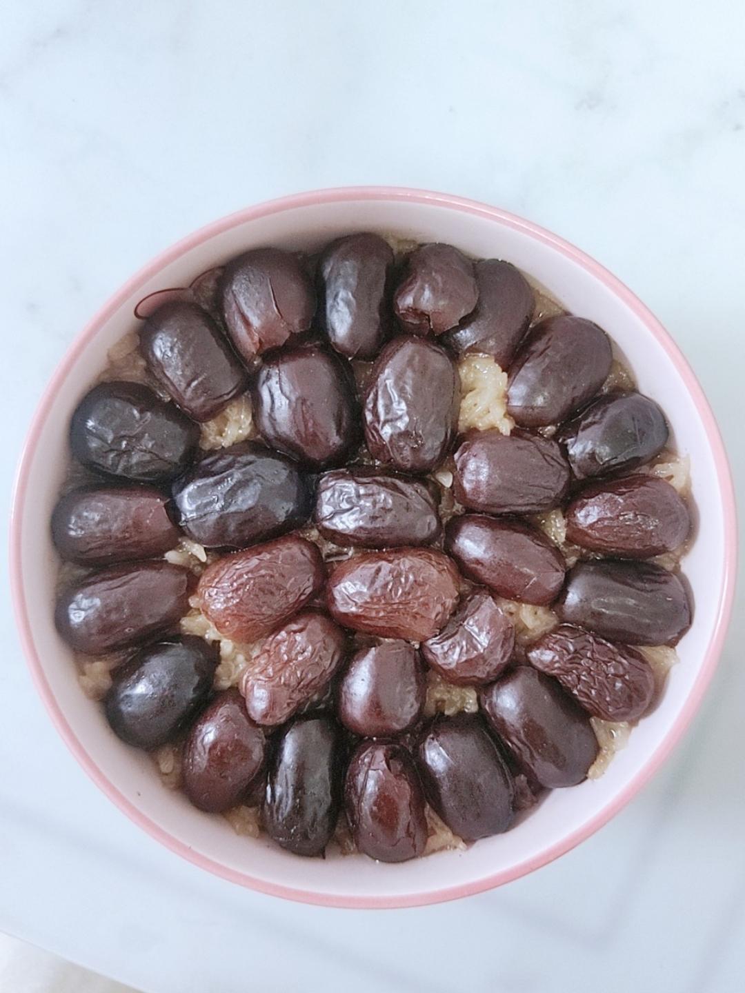 加了椰枣,没放糖,好吃,豆子类的还是要煮一下,还加了杏仁蔓越莓干之类的