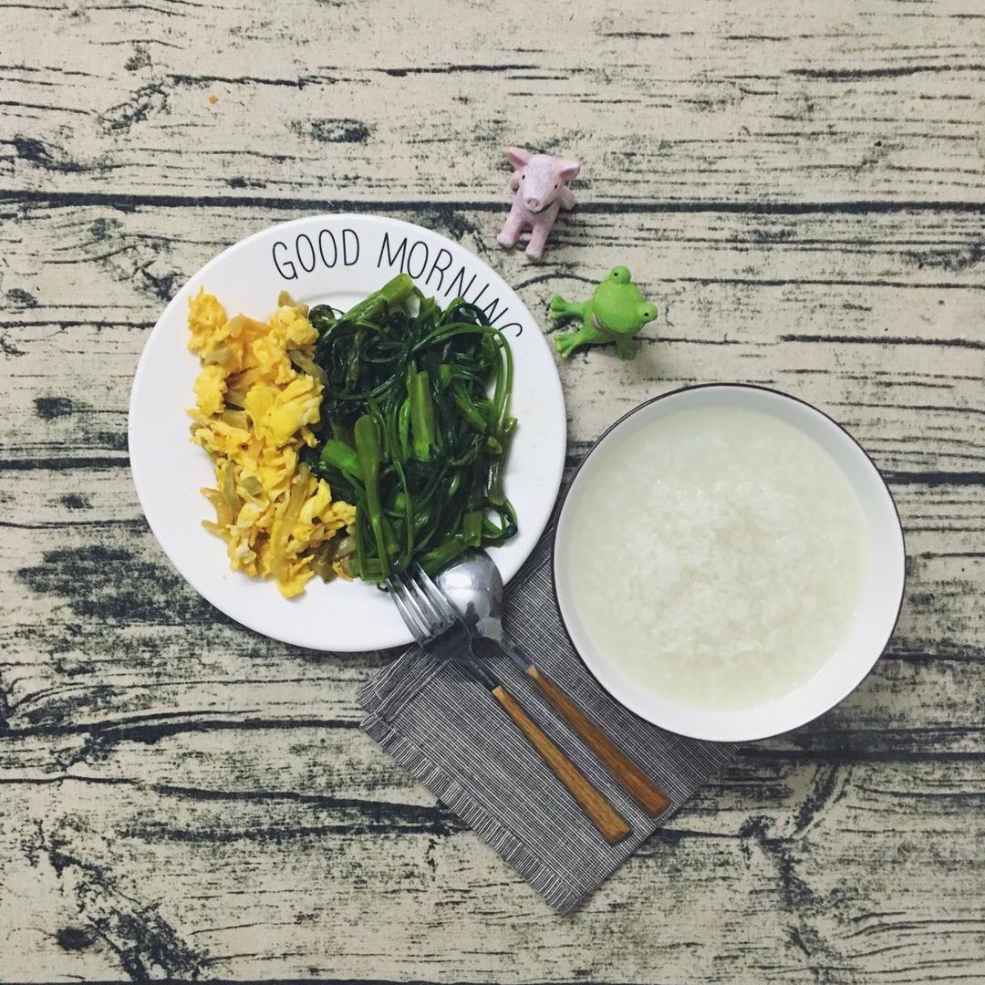白粥 沙茶空心菜 榨菜炒蛋