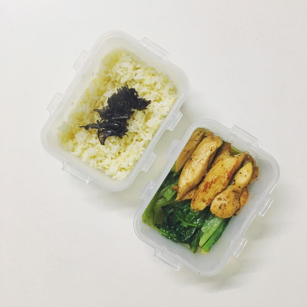 小米饭+清炒芦笋叶+黑椒鸡胸