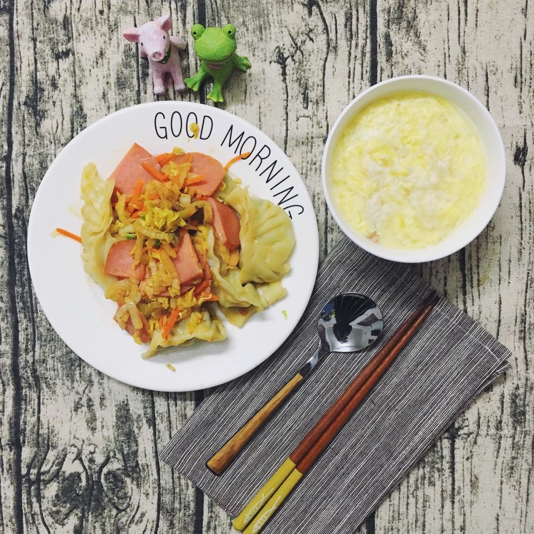 炒饺子+酒酿鸡蛋