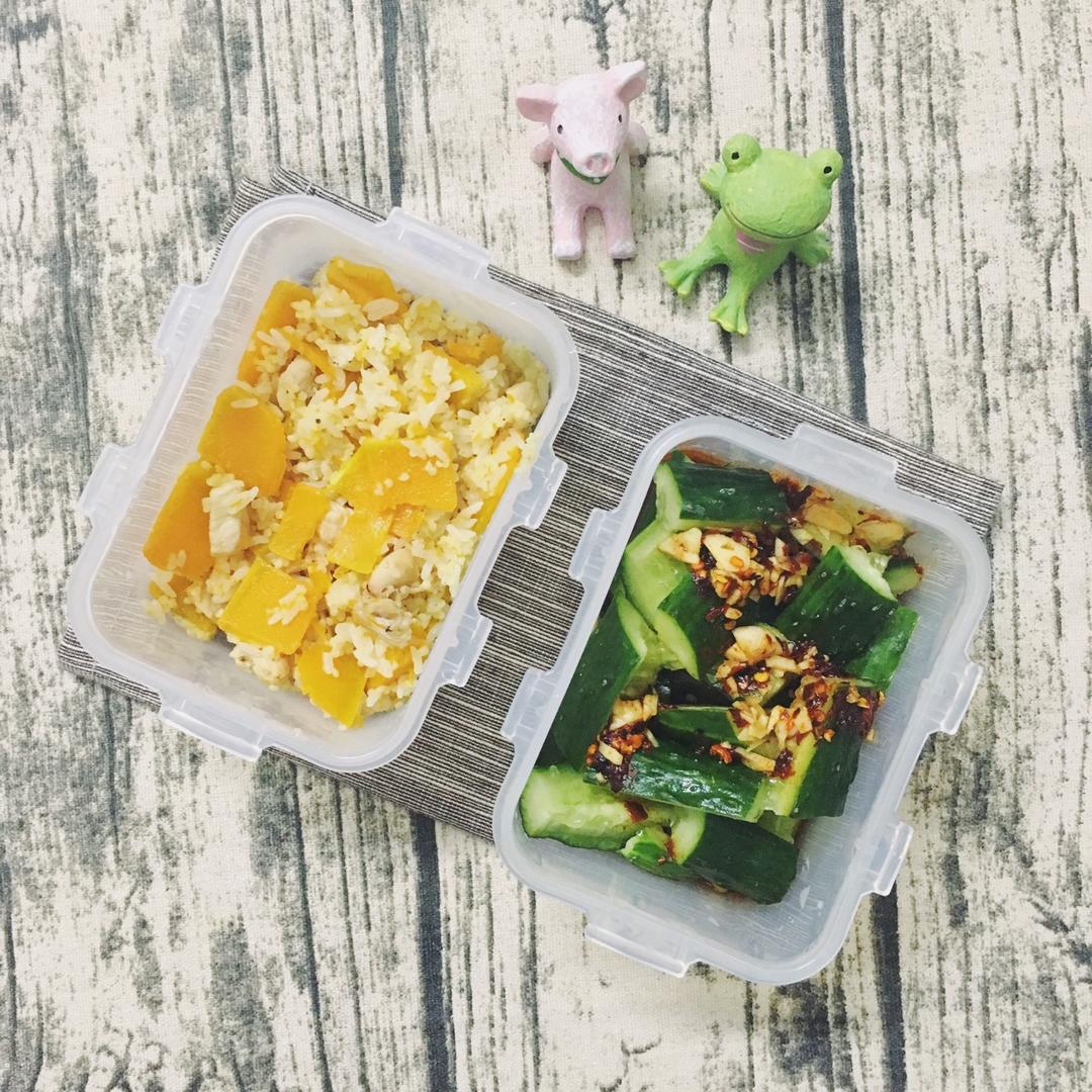 南瓜鸡肉饭+拍黄瓜
