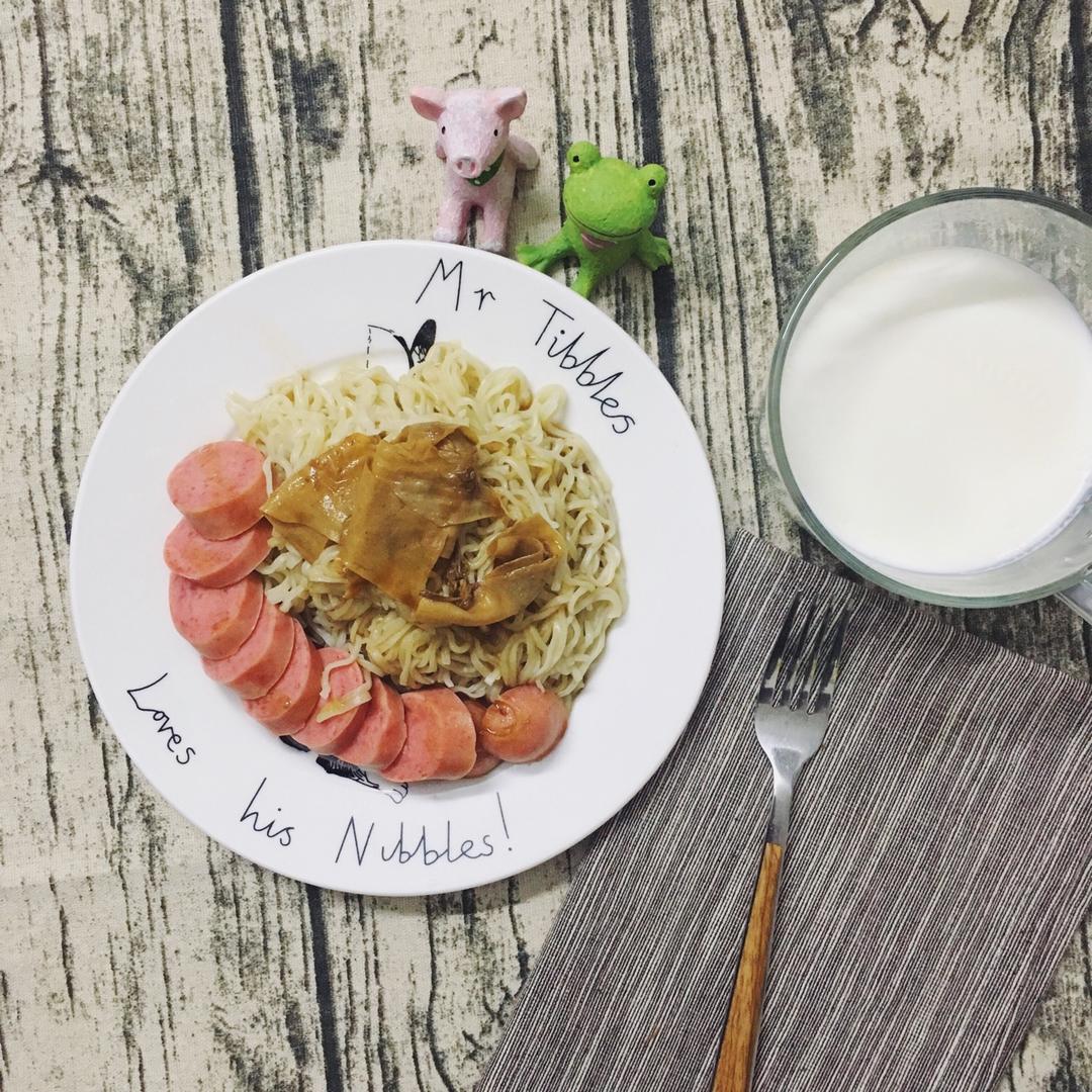 卤汁拌面+脆皮肠+酒酿牛奶