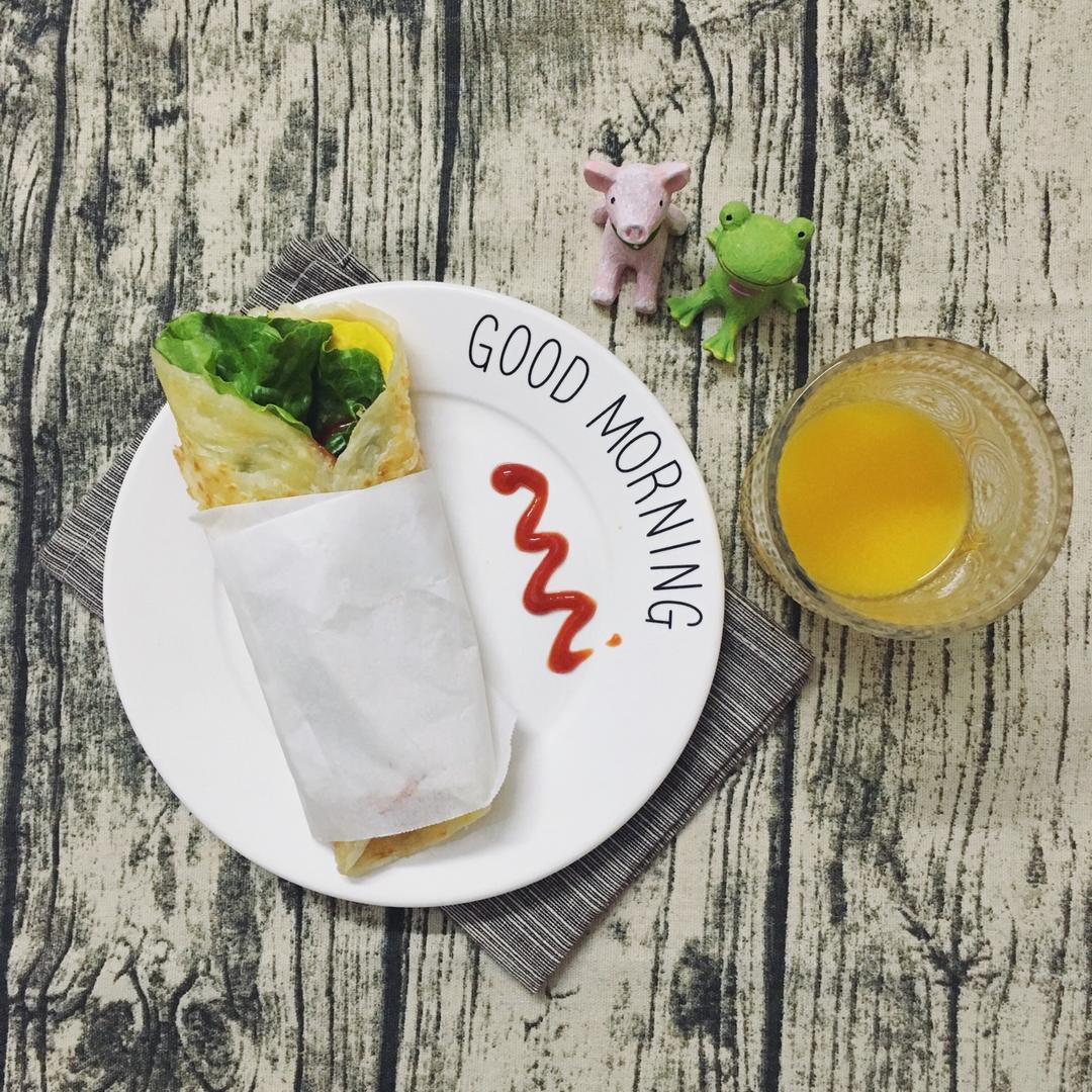 简易手抓饼+芒果汁
