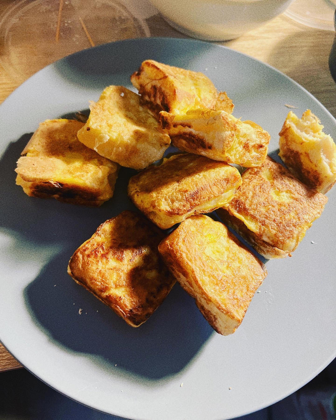 买了个三色吐司,不想直接吃,跟风做的。切的不好看,没有去皮,东倒西歪的,不过味道还行。炼乳自己熬,挺简单的。 #炼奶西...