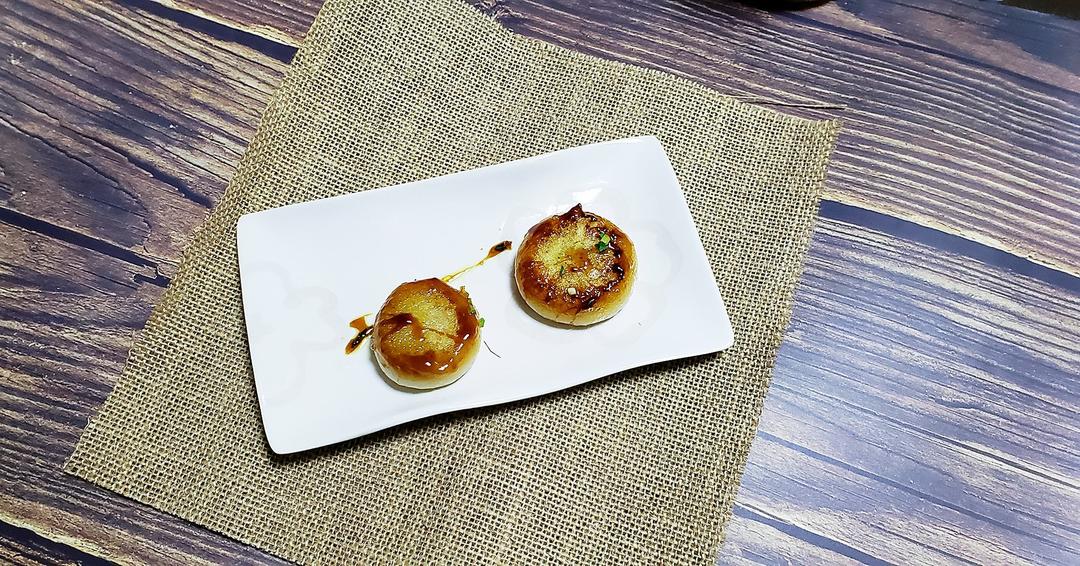 自己瞎做的鲜肉煎团子🍡,淋上汁,甜甜的咸咸的,还很鲜,传统的苏州口味~