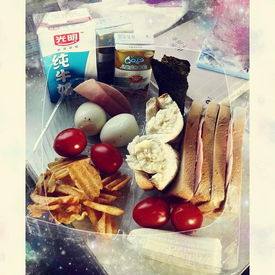 绝对的强迫症,坐火车用手边的食材准备的我和少爷的早餐!