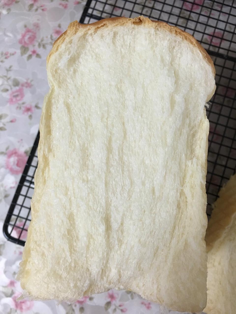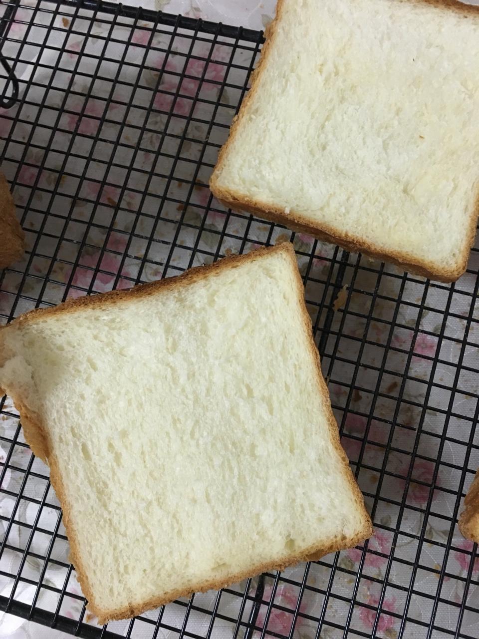 差不多算第一次做平顶火候没掌握好,但是组织不错,手揉38分钟,面温28.8,200上下火40分钟