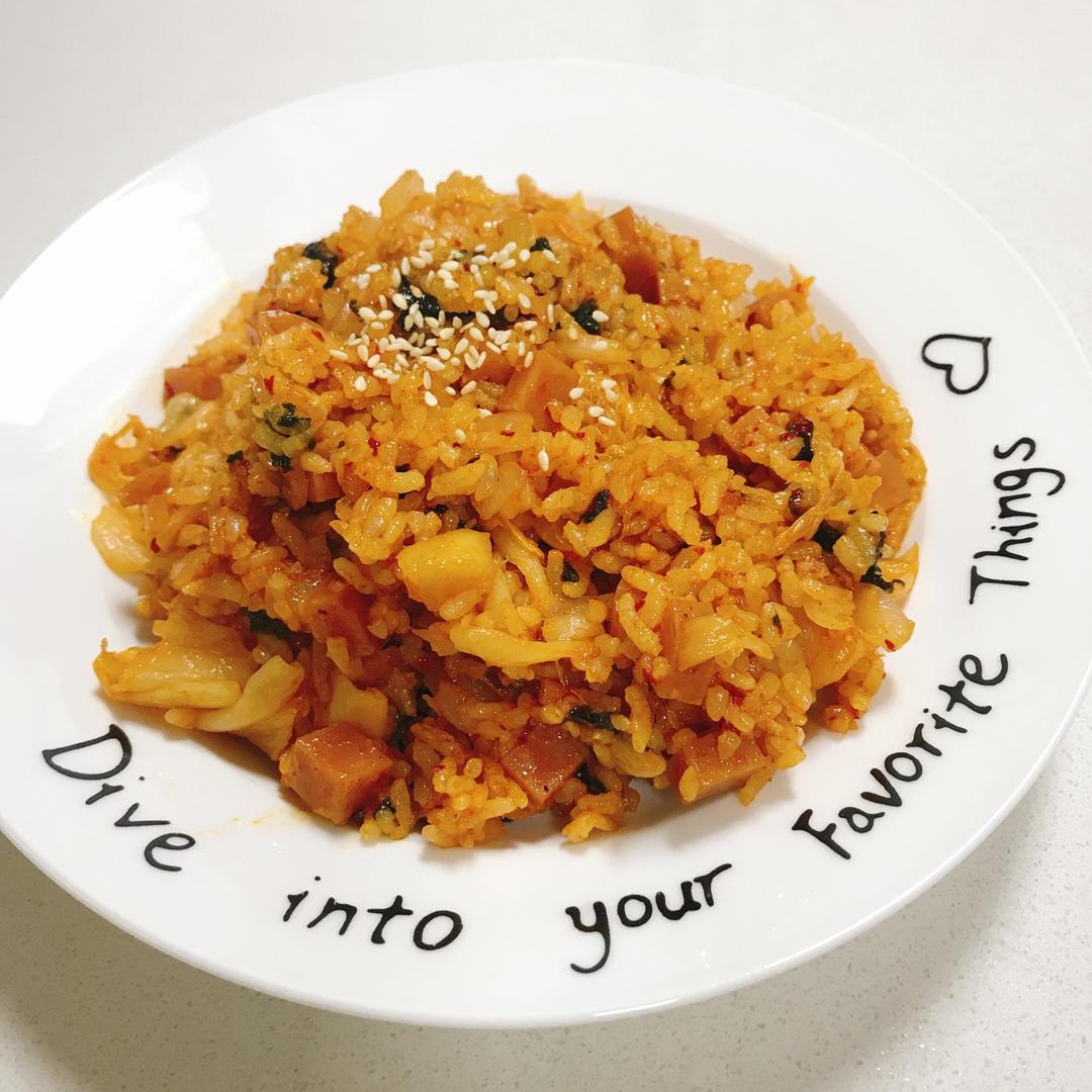 跟涵儿一起炒出来的 泡菜火腿炒饭哈哈哈 连着吃了两天