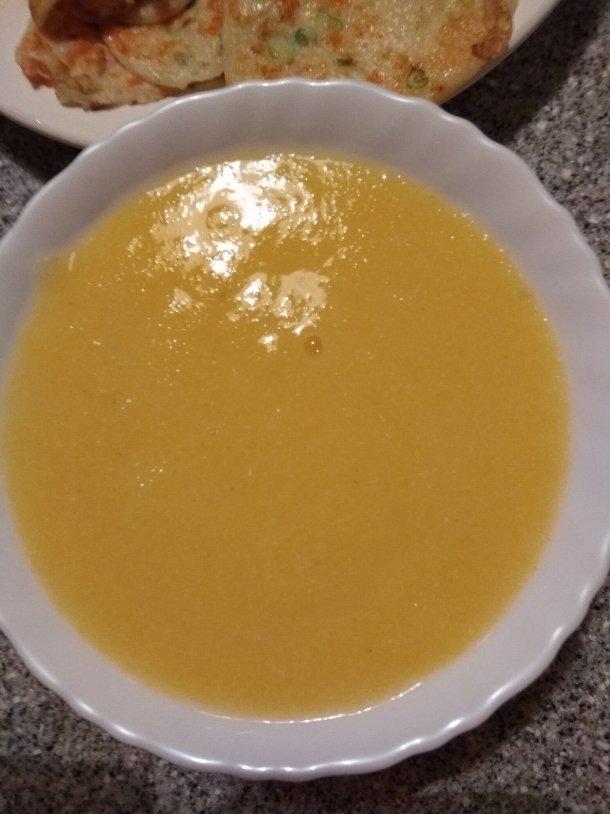 小煎饼(葱花+胡萝卜丁)配玉米面粥,粗细搭配,健康又美味的早餐