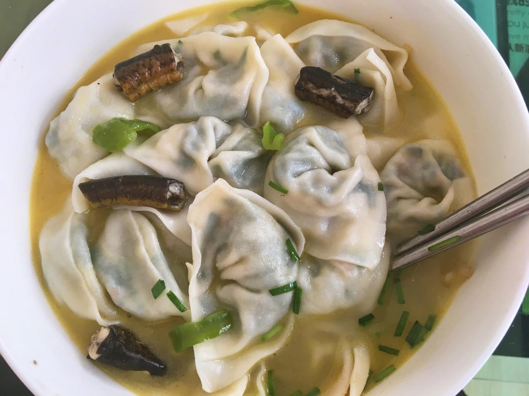 长鱼汤,韭菜馄饨。