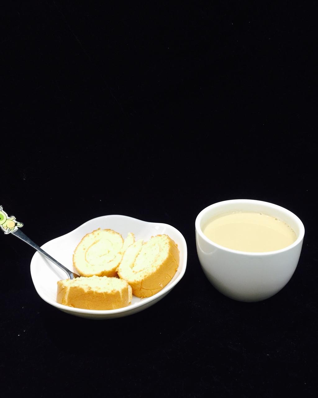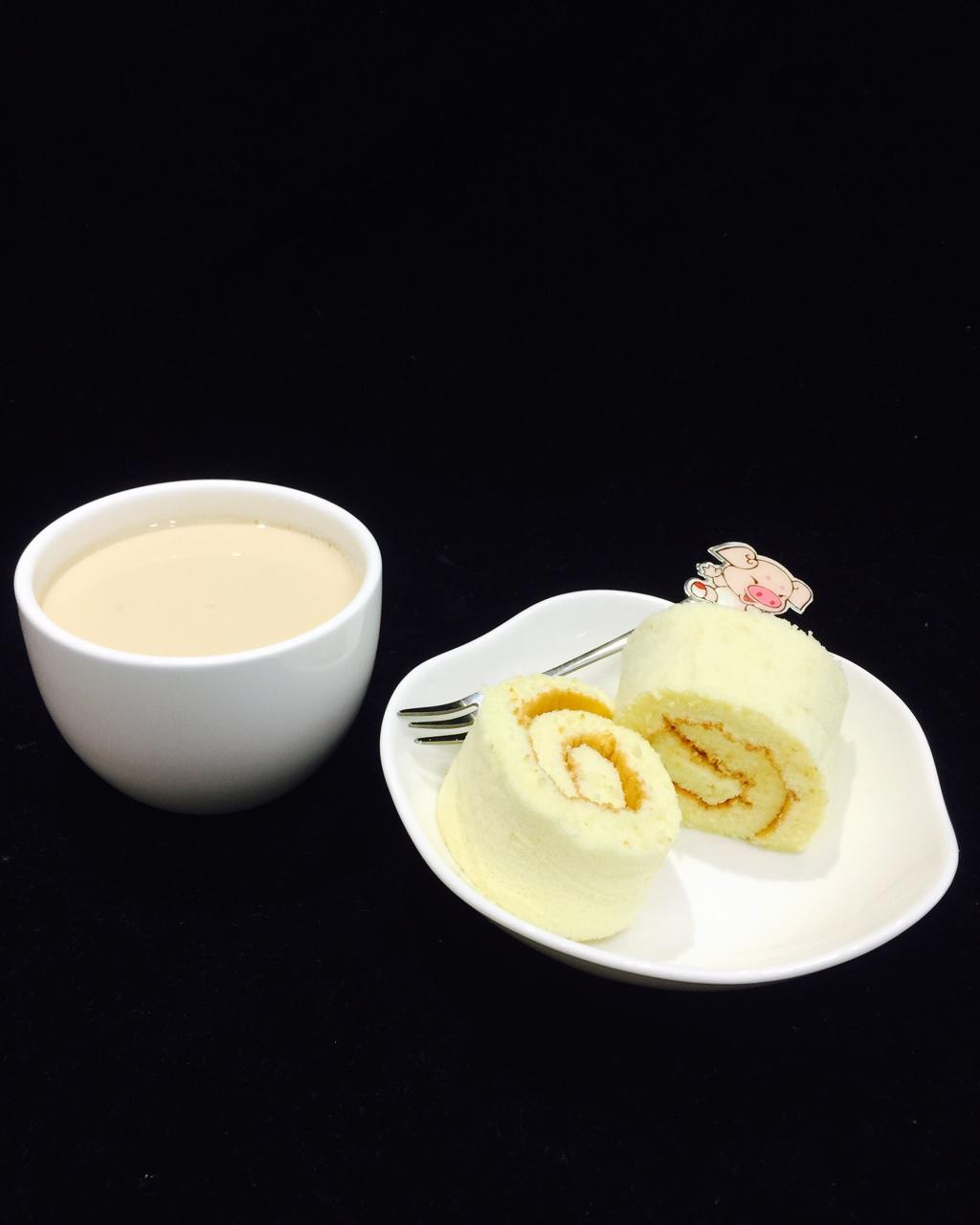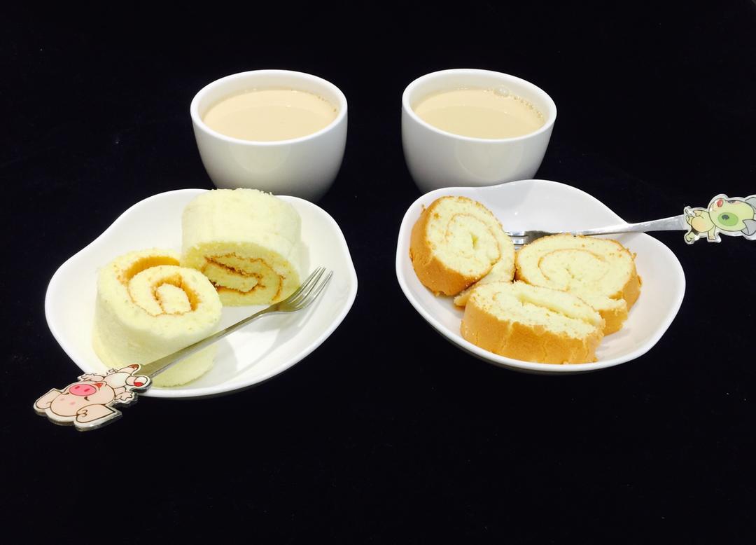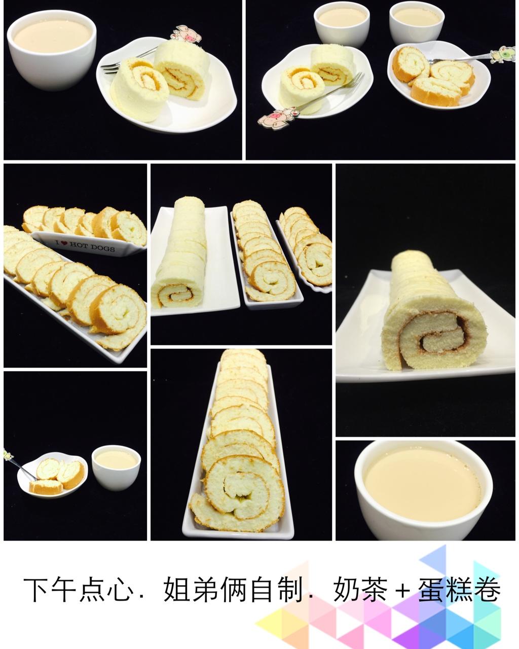下午点心.姐弟俩自制.奶茶+蛋糕卷