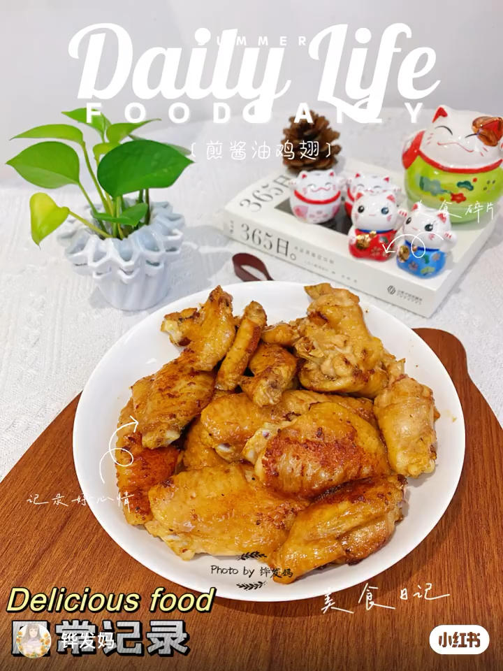 酱油炒豆角,煎酱油鸡翅,凉拌木耳黄瓜鸡肉,苦瓜排骨汤。