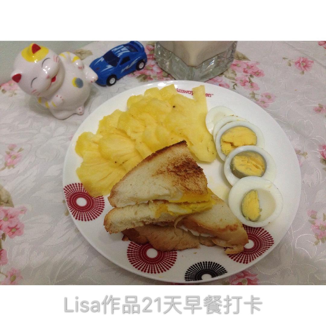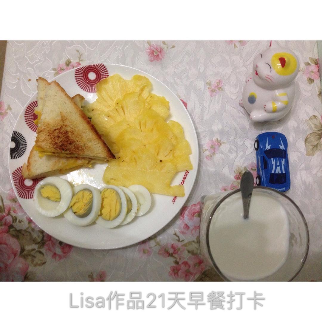 吐司煎蛋🍳、水煮蛋、菠萝🍍、牛奶🥛