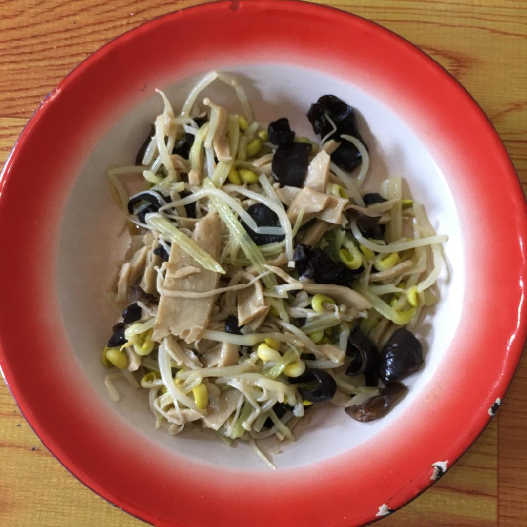 孕37周+1天,今天中饭主食是小米粥,主菜: 清炒水面筋+金针菇+小芹菜+黑木耳+黄豆芽,出锅前加一点盐和一点点生抽,味...