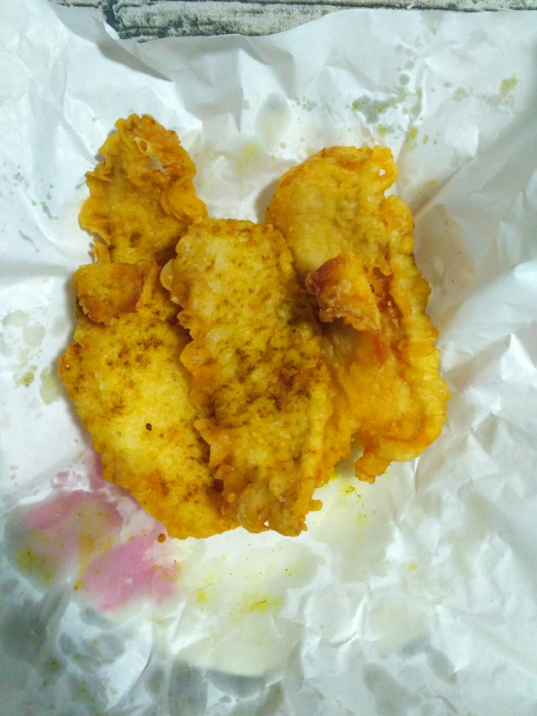 炸鳕鱼。垫一张吸油纸,不求好看了。
