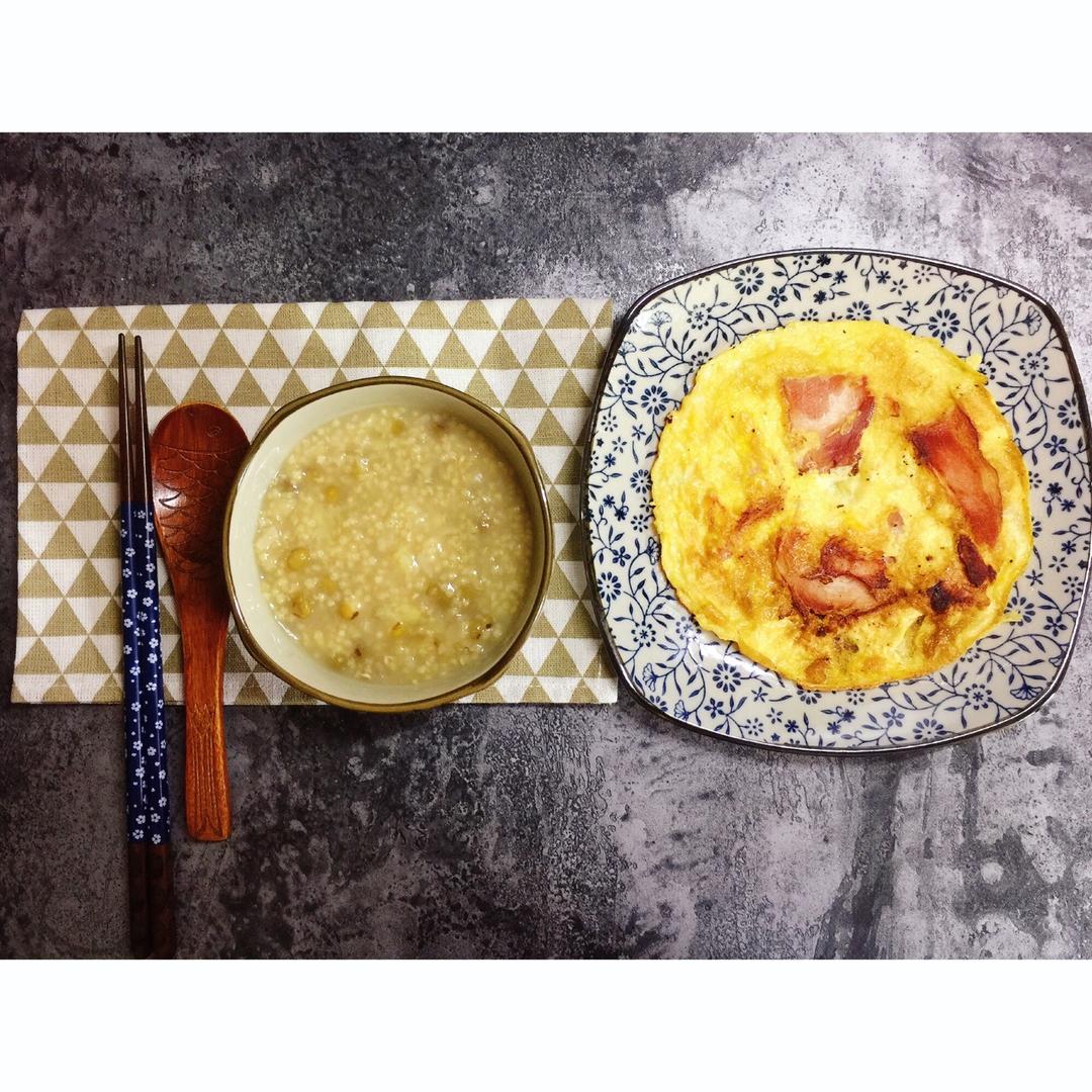 绿豆小米粥+培根烘蛋