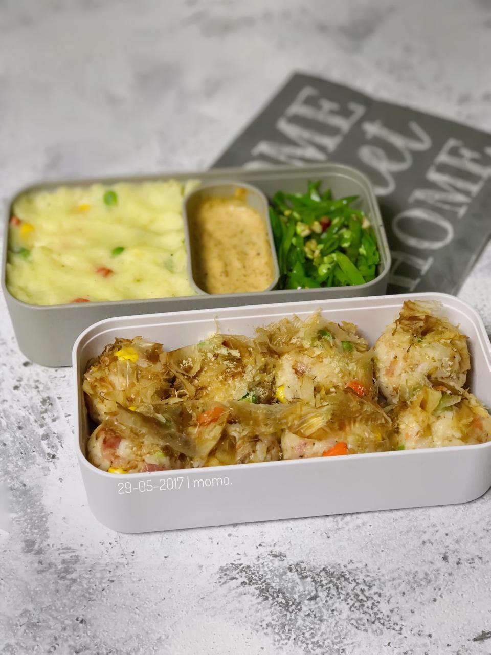 杂蔬饭团+土豆泥+美乃滋+凉拌+凉拌荷兰豆