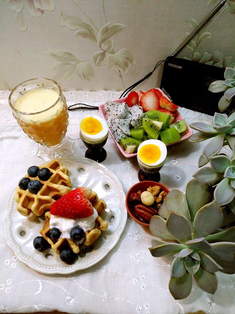 橙汁*华夫饼*鸡蛋*坚果*水果