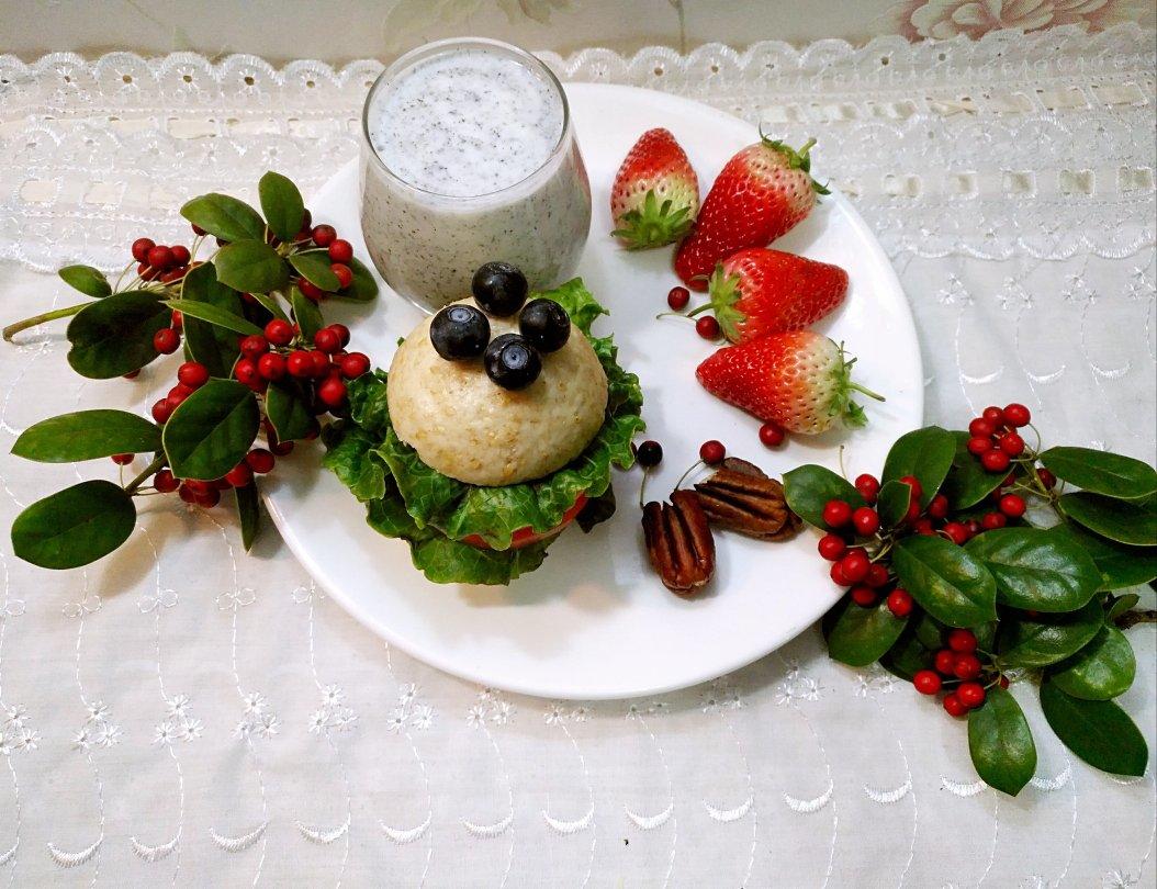黑芝麻奶昔*杂粮馒头版汉堡*坚果*水果
