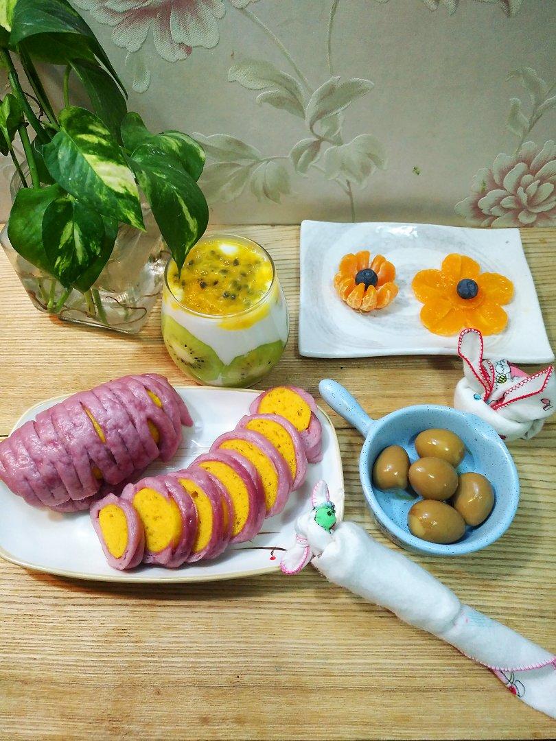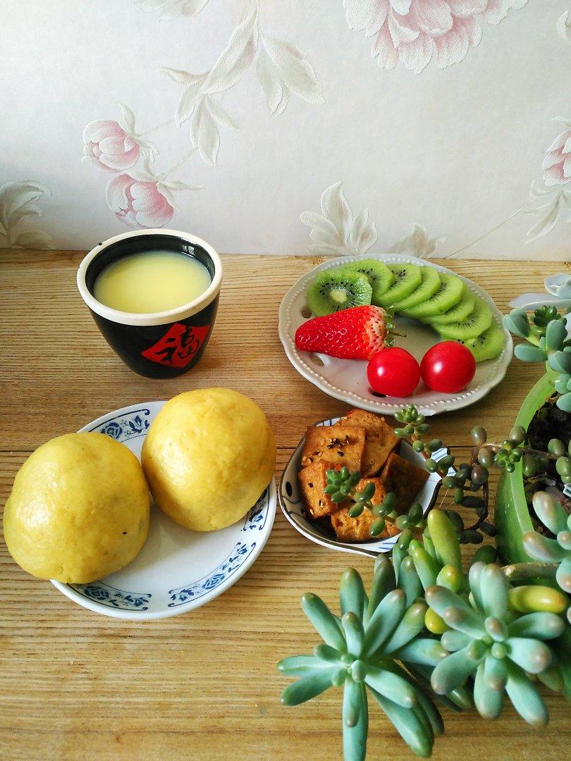 百香果奶昔*馒头卷*五香鹌鹑蛋*水果