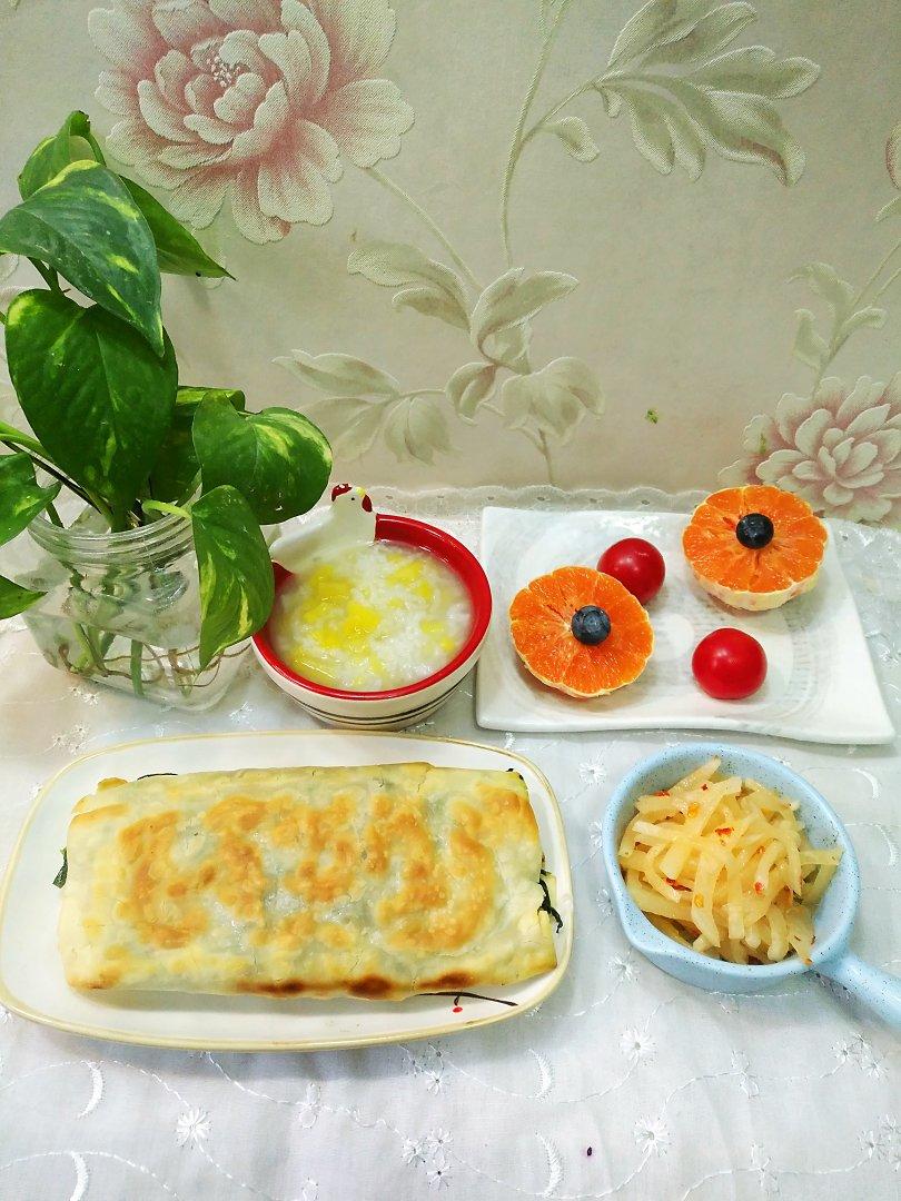 红薯粥*煎菜卷*呛拌白萝卜丝*水果