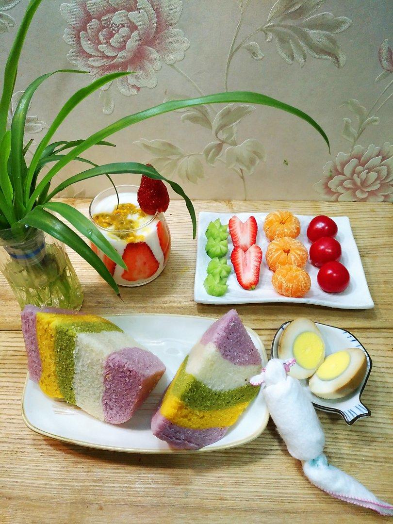 草莓百香果奶昔*多彩发糕*茶叶蛋*蔬果