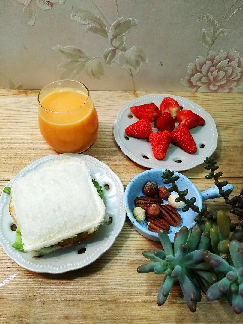 橙汁*土司盒子*坚果*水果