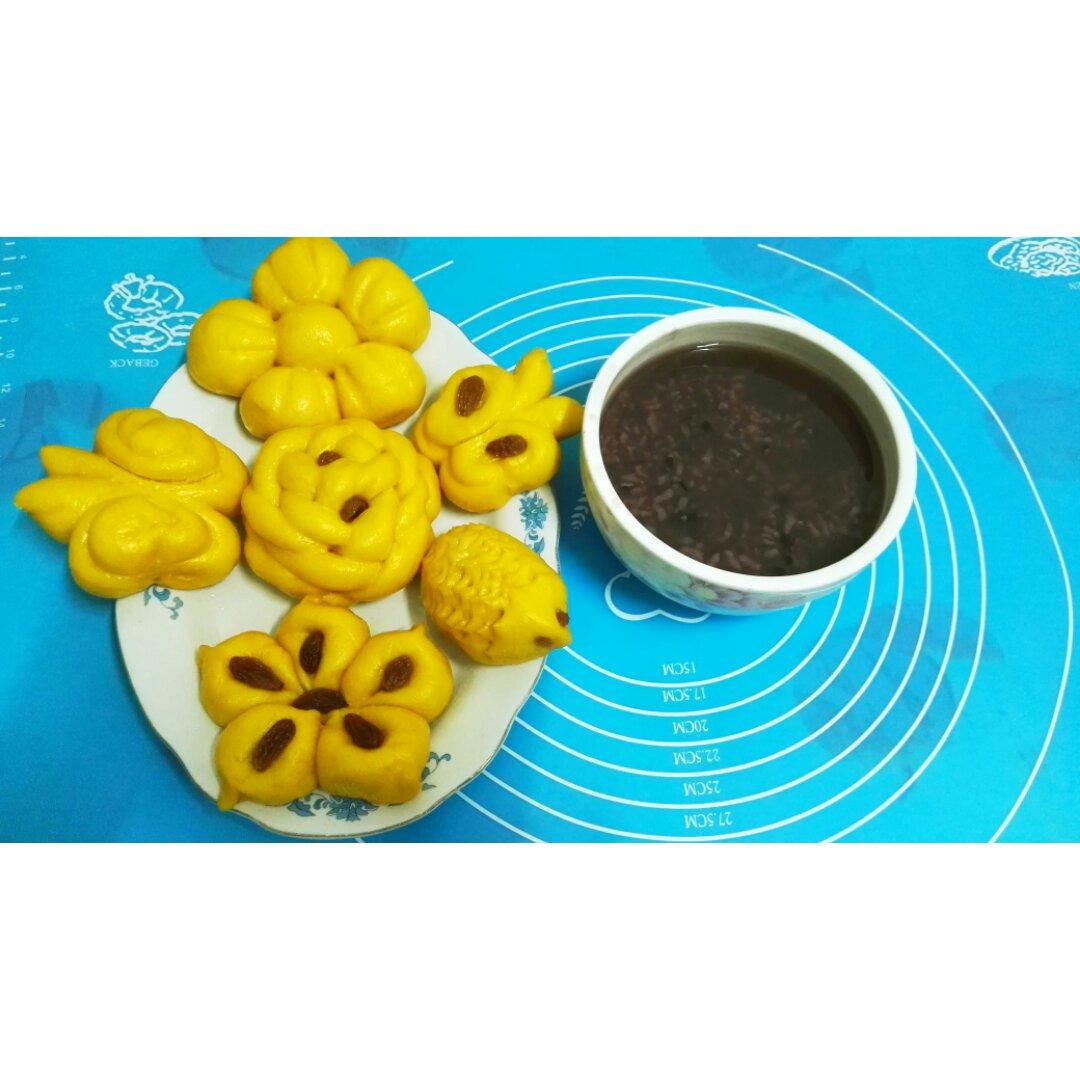 南瓜馒头+黑米粥,明天的早餐~