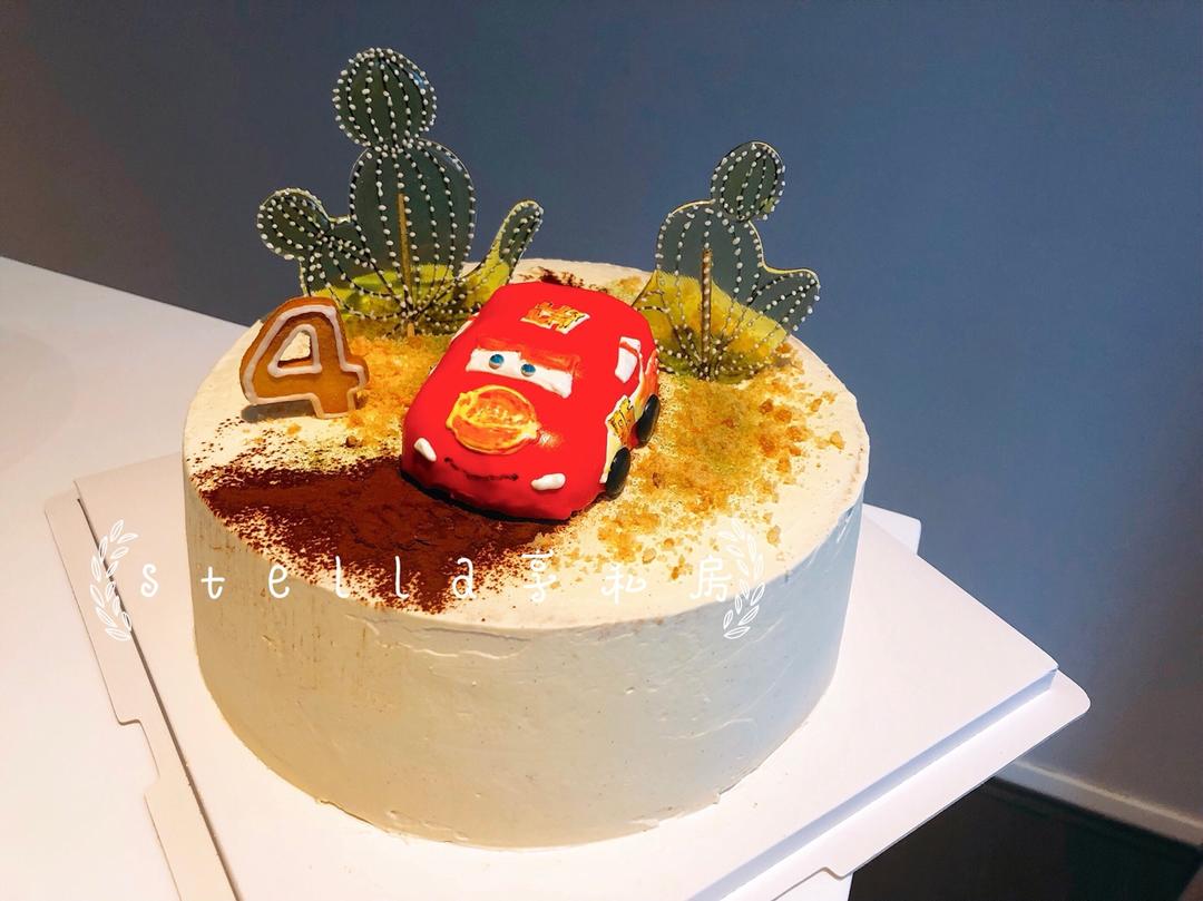 临时加的急单,McQueen的淋面小蛋糕,旁边放两个爱素糖装饰,感觉有点粗糙哦,抹面太惨了…… #晚餐•2018年7月1...