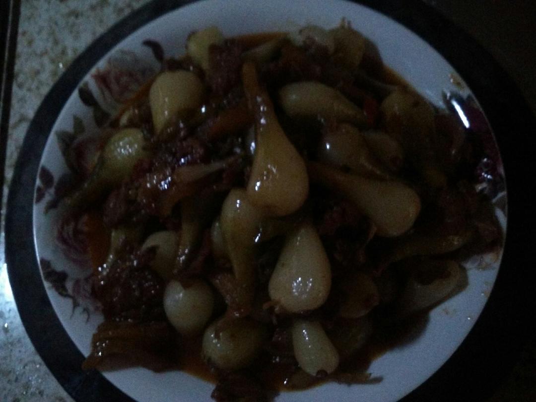 颜色很好看,感觉还可以加点土豆,蒜切成了大块,味道还不错。