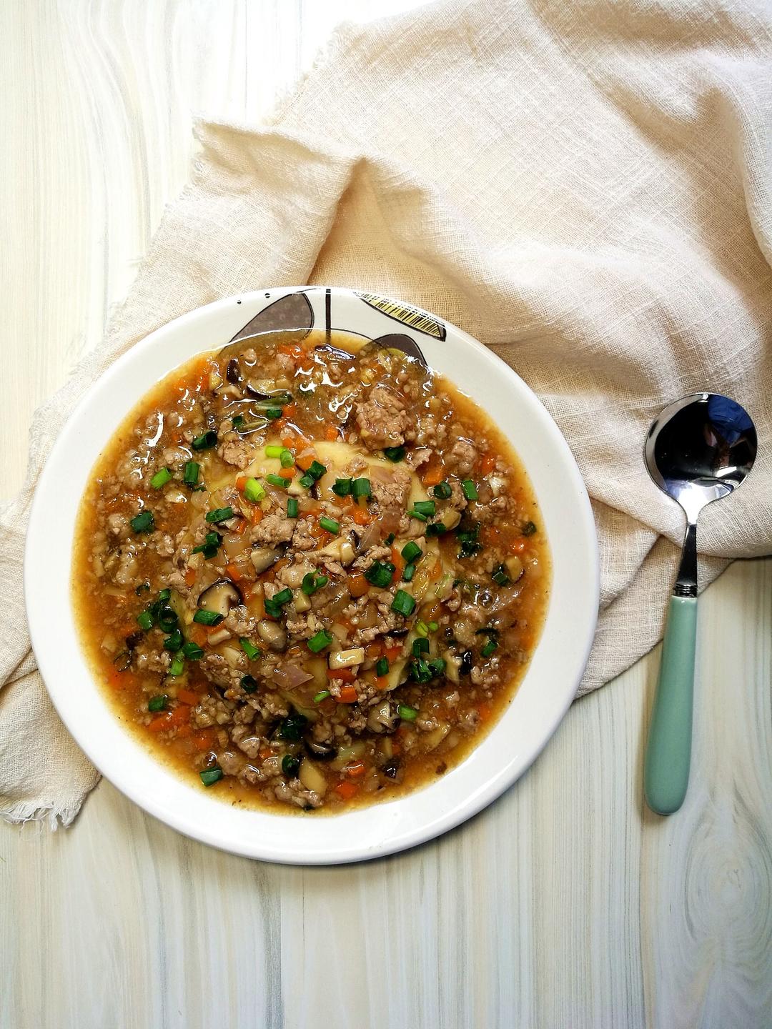 终于拔草了五郎的肉酱土豆泥~ 土豆泥蒸熟后用盐、糖、黑胡椒和牛...