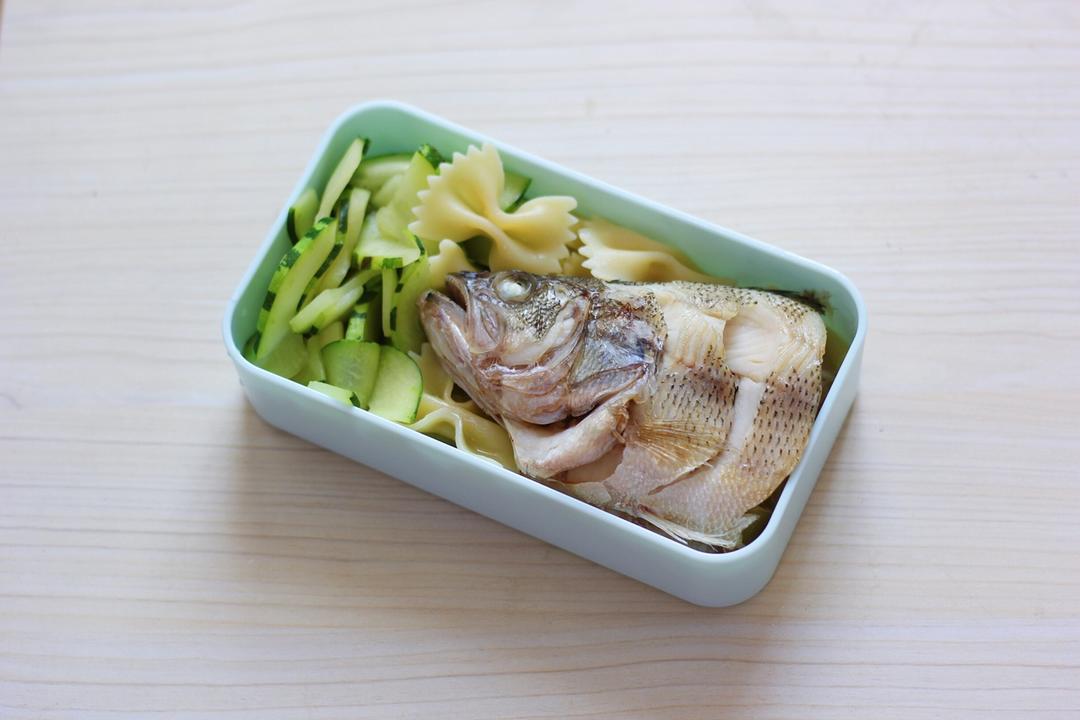 炒青瓜 昨天剩的半条鲈鱼 意面