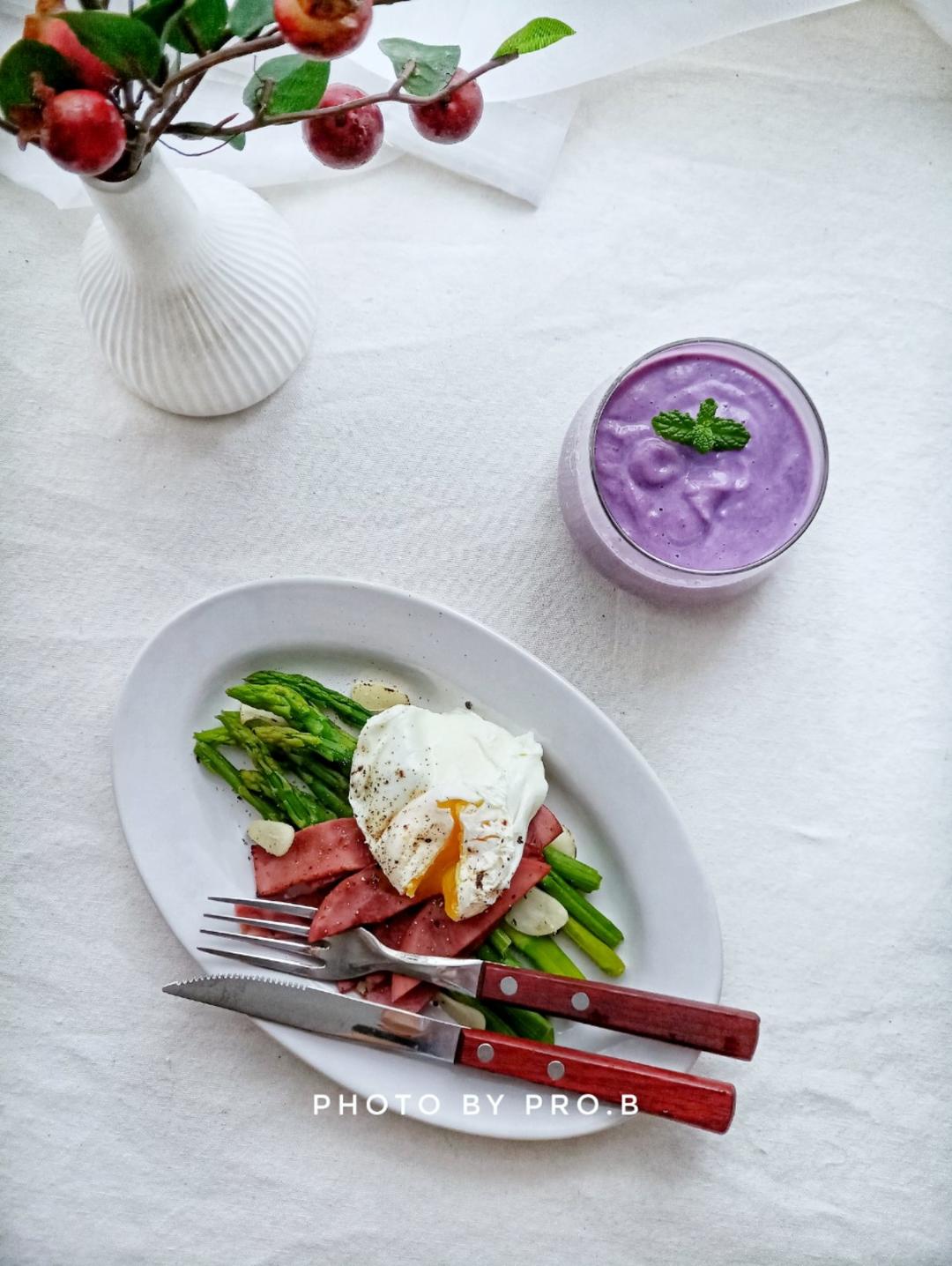 芦笋火腿鸡蛋+紫薯奶昔